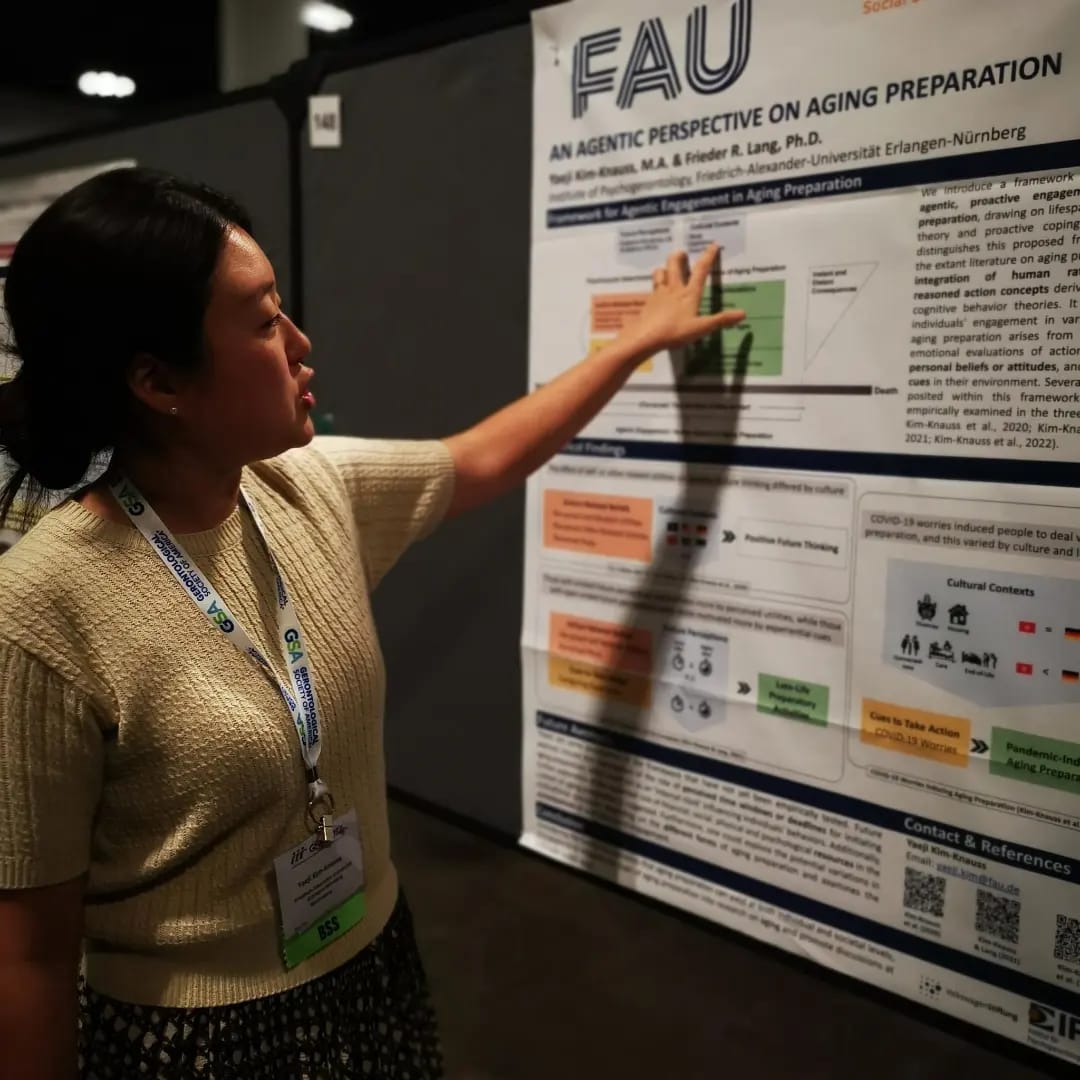 Auf reges Interesse stieß auch Dr. Yaeji Kim-Knauss mit ihrem Poster auf der GSA2023, welches die Ergebnisse ihrer Promotion erklärt.