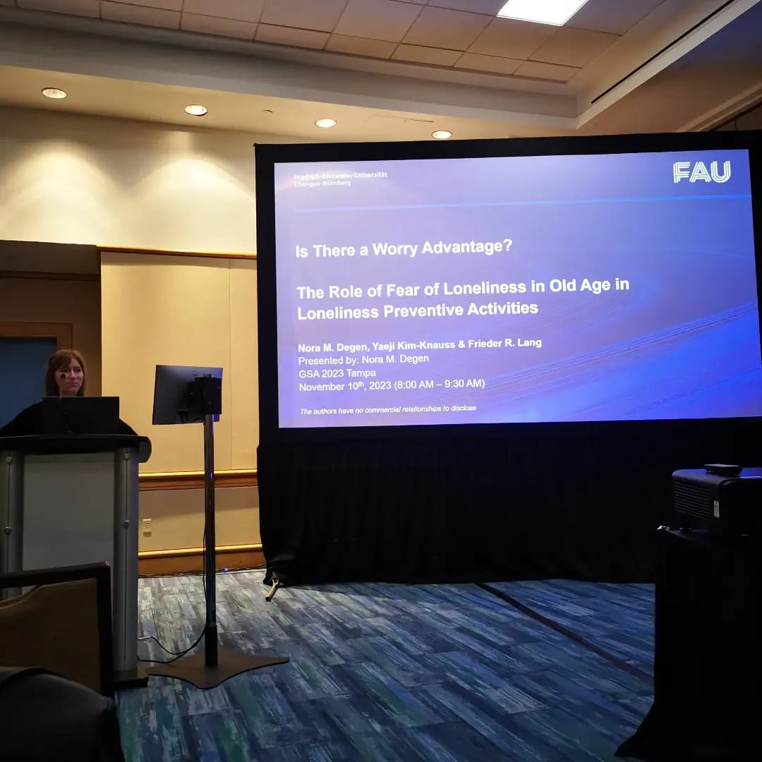 Im Rahmen des von unseren KooperationspartnerInnen aus dem Ageing as Future Projekt organisierten Symposium stellte Nora Degen die Arbeit von sich, Yaeji Kim-Knauss und Frieder Lang vor: Is there a worry advantage? The role of fear of loneliness in old age for loneliness preventive activities. Wir gratulieren zu diesem sehr erfolgreichen ersten Konferenzvortrag!